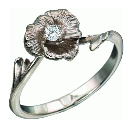 Кольцо "Аленький цветочек" с 1-м бриллиантом, выполнено из белого золота 585 пробы, средний вес изделия 1,95г. Вставка 1 бриллиант Круглой огранки с 57-ю гранями, с характеристиками не ниже 4/6, весом ~ 0,065кт. Кольцо отполировано до зеркального блеска.
