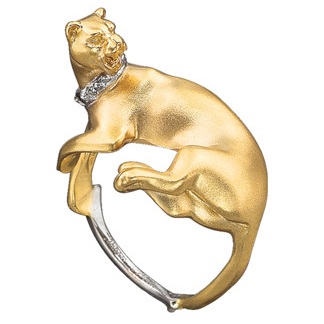 Кольцо "Пума" с 6-ю бриллиантами, выполнено из желтого и белого золота 585 пробы, средний вес изделия 6,90г. Вставка 6 бриллиантов Круглой огранки с 57-ю гранями, с характеристиками не ниже 4/6, общим весом ~ 0,04кт. Кольцо отполировано до зеркального блеска.