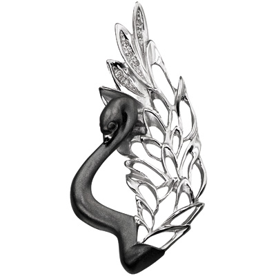 Подвеска "Черный лебедь" с бриллиантами, выполнена из белого золота 585 пробы, средний вес изделия г. Вставка бриллианты Круглой огранки с 57-ю гранями, с характеристиками не ниже 4/5, весом кт.