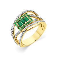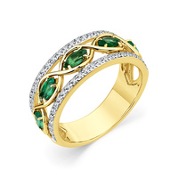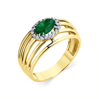 Золотое кольцо "Глаз Нила" с 1-м Изумрудом, выполнено из желтого золота 585 пробы, средний вес изделия 8г. Вставка: 1 Изумруд, 3/2- 0.6 ct.